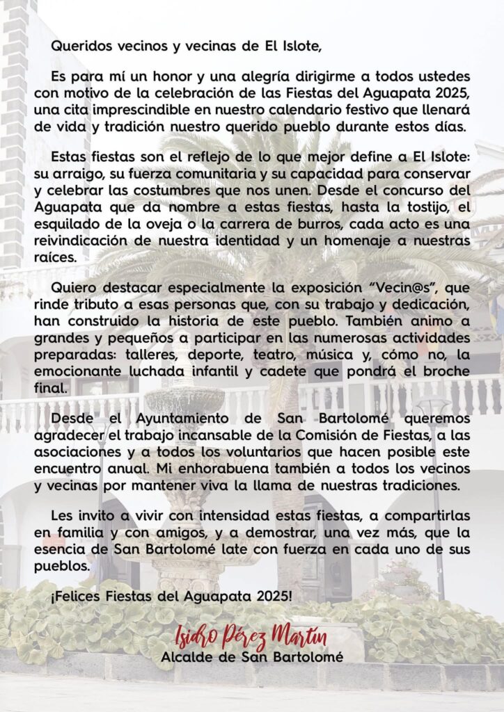 Programa El Islote, San Bartolomé, Fiestas Aguapata 2025 del 3 al 12 de Octubre