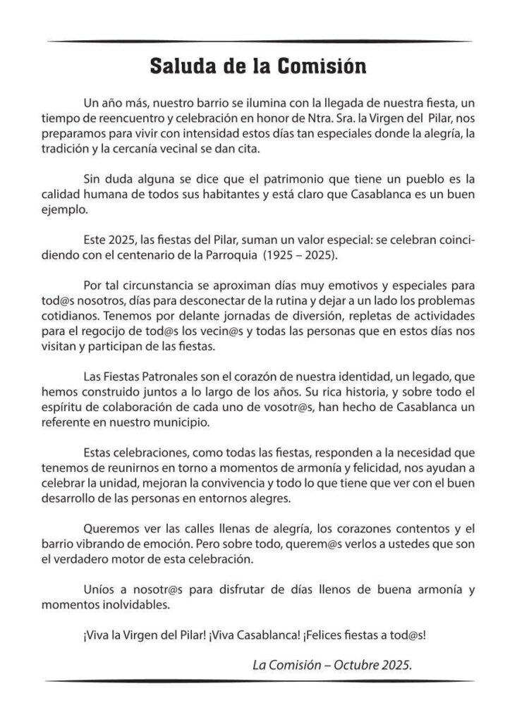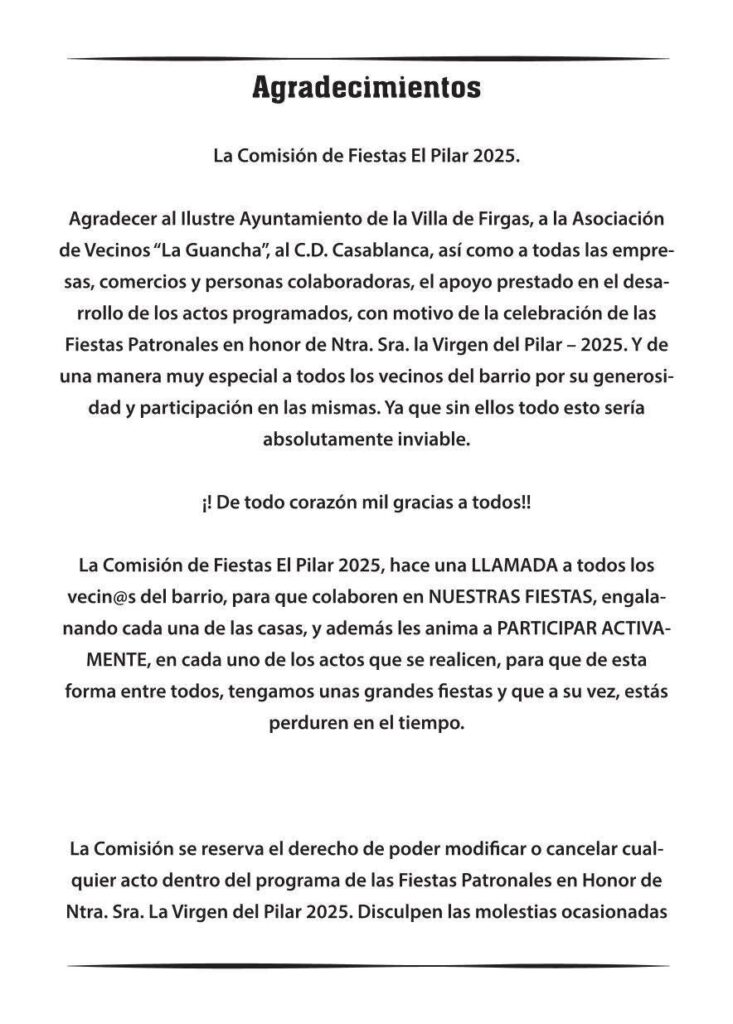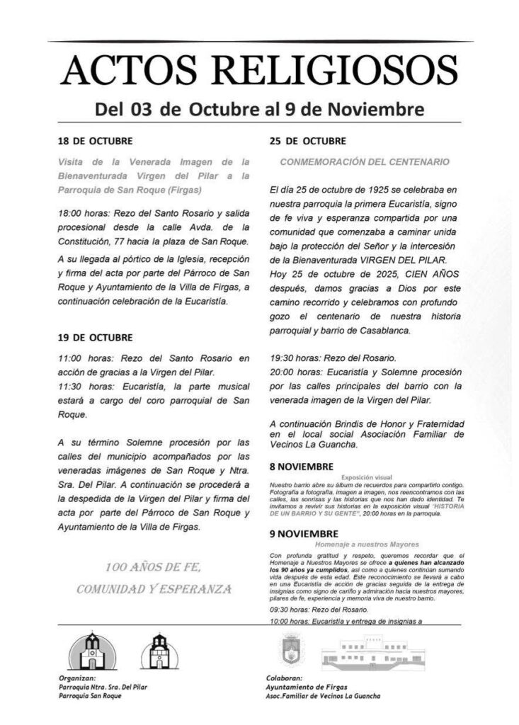 Programa Fiestas Casablanca, Firgas, Nuestra Señora del Pilar 2025 del 03 al 18 de Octubre