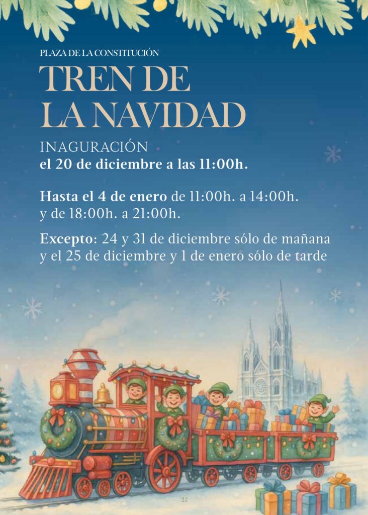Se podrá visitar hasta el 5 de enero, de 10:00 h a 14:00 h y de 17:00 h a 21:00 h 24 y 31 de diciembre, de 10:00 h a 14:00 h CERRADO: 15, 22, 25 y 29 de diciembre y 1 de enero