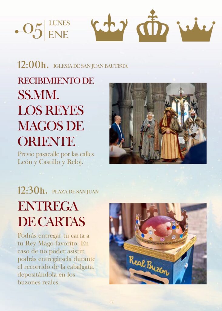 Podrás entregar tu carta a tu Rey Mago favorito. En caso de no poder asistir, podrás entregársela durante el recorrido de la cabalgata, depositándola en los buzones reales.