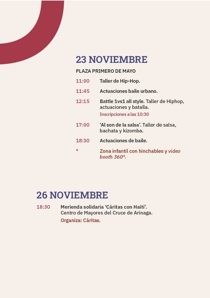 18:30 Merienda solidaria ‘Cáritas con Haití’. Centro de Mayores del Cruce de Arinaga.