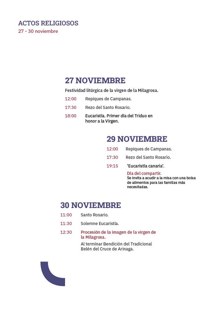 Programa Fiestas Cruce de Arinaga, Agüimes, La Milagrosa 2025 del 15 al 30 Noviembre