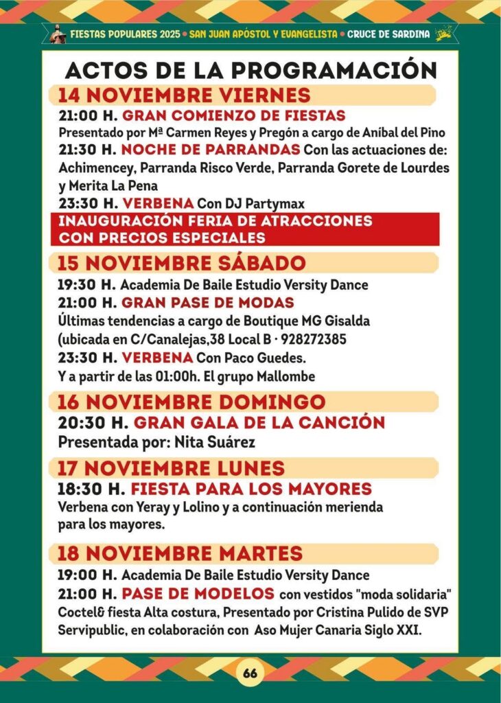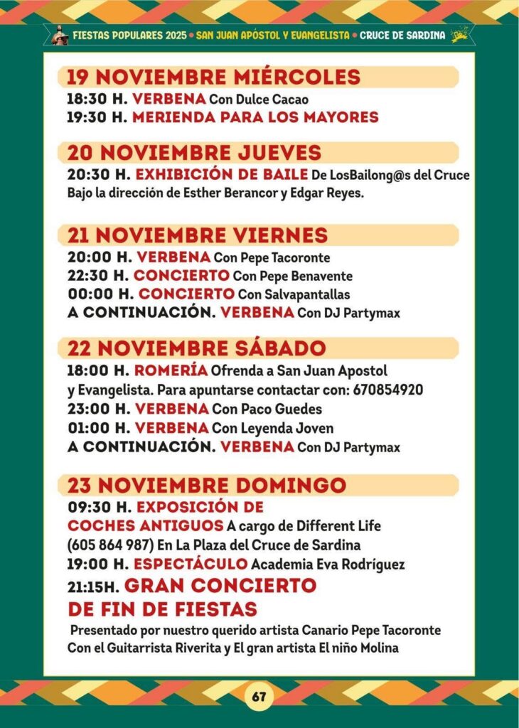 Programa Fiestas Cruce de Sardina, Santa Lucía, San Juan Apóstol y Evangelista 2025