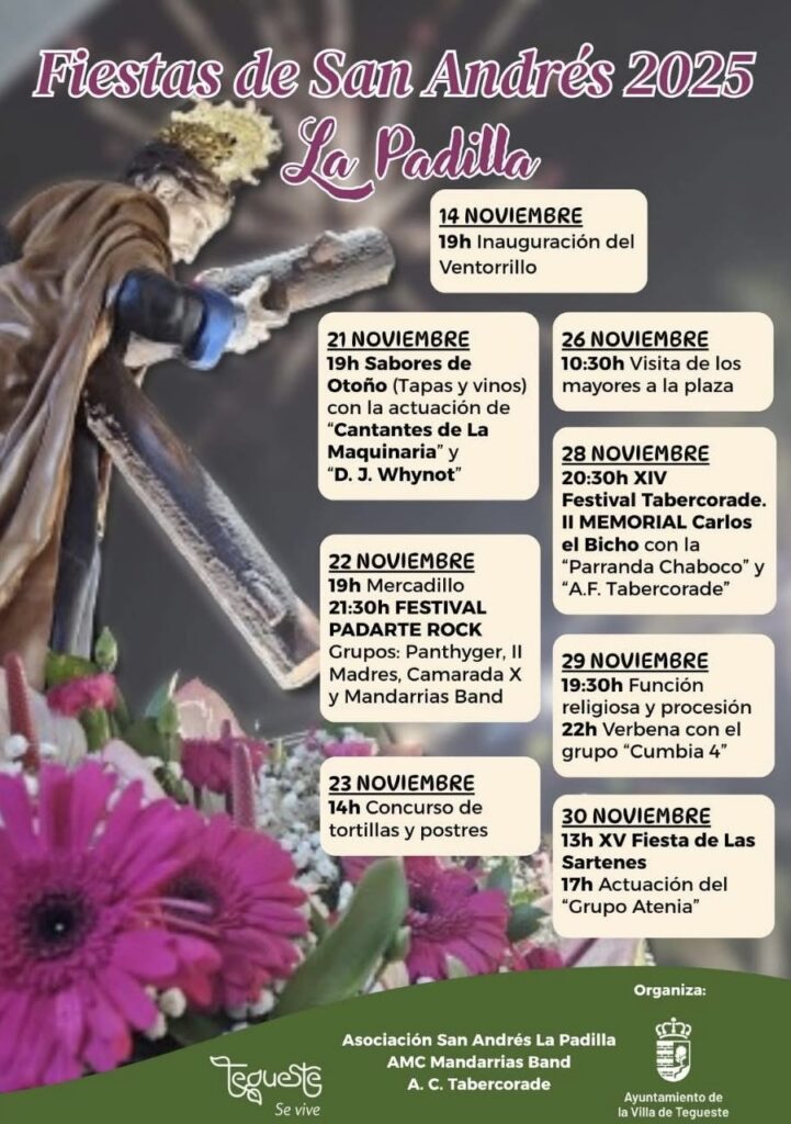 Programa Fiestas La Padilla, Tegueste, San Andrés 2025 del 14 al 30 de Noviembre