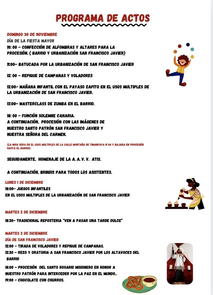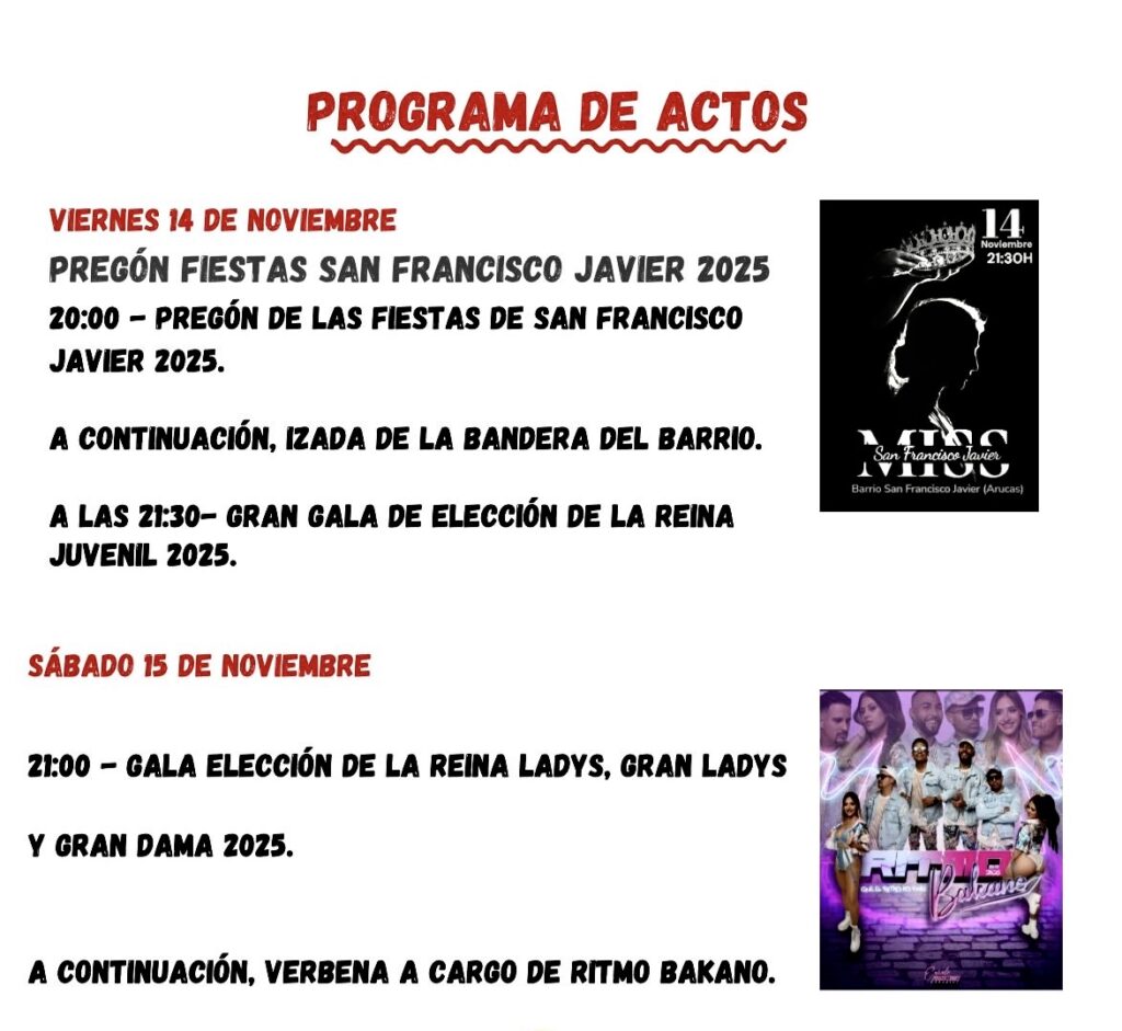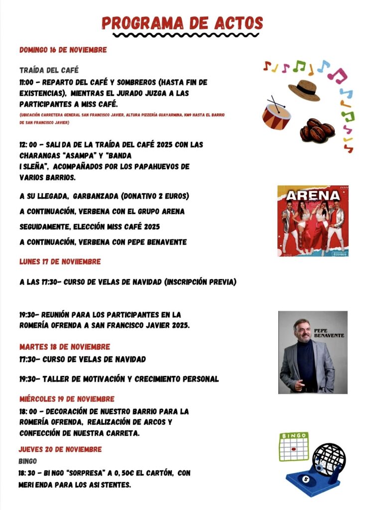 Programa San Francisco Javier, Arucas, Fiestas Patronales y Traída del Café 2025 del 14 de Noviembre al 6 de Diciembre