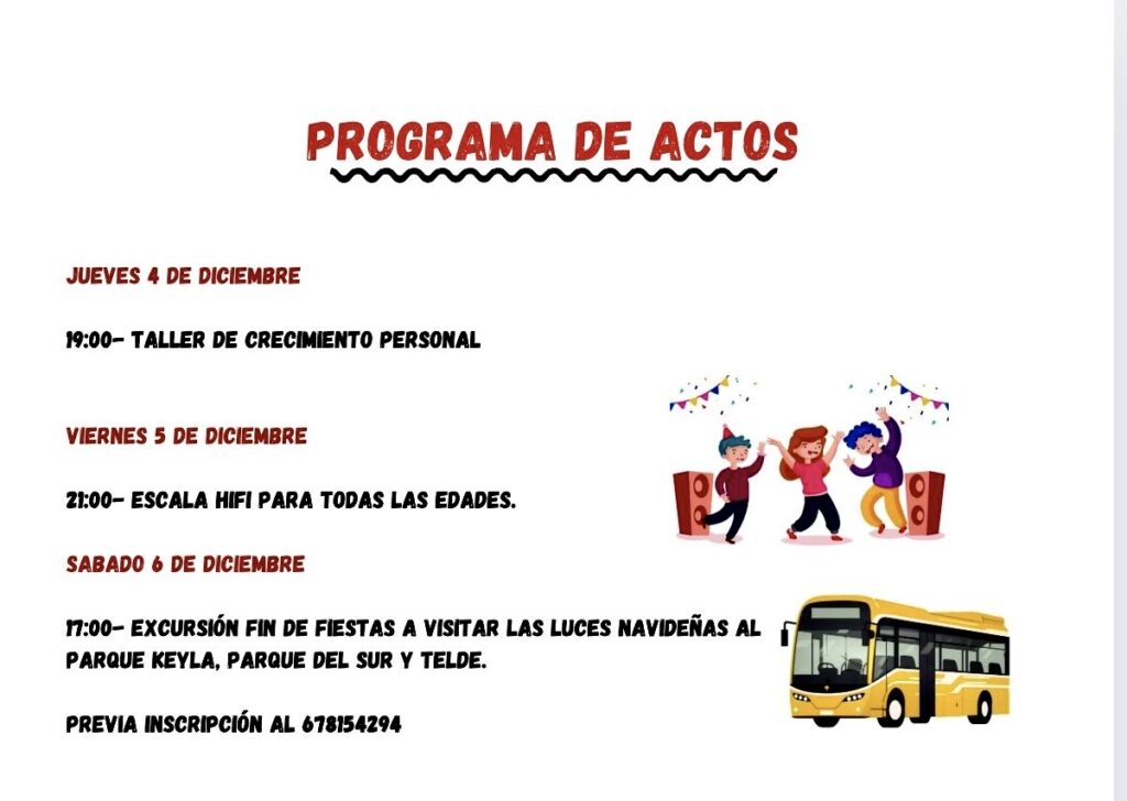 17:00- EXCURSIÓN FIN DE FIESTAS A VISITAR LAS LUCES NAVIDEÑAS AL PARQUE KEYLA, PARQUE DEL SUR Y TELDE.