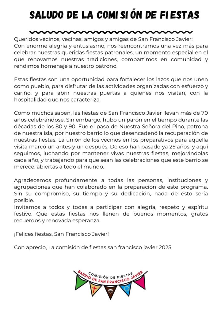 PREGÓN FIESTAS SAN FRANCISCO JAVIER 2025 20:00 – PREGÓN DE LAS FIESTAS DE SAN FRANCISCO JAVIER 2025.