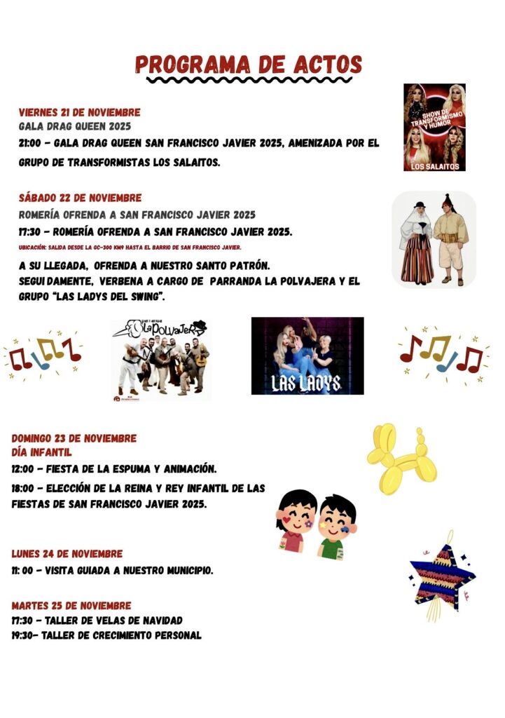 18:00 – ELECCIÓN DE LA REINA Y REY INFANTIL DE LAS FIESTAS DE SAN FRANCISCO JAVIER 2025.