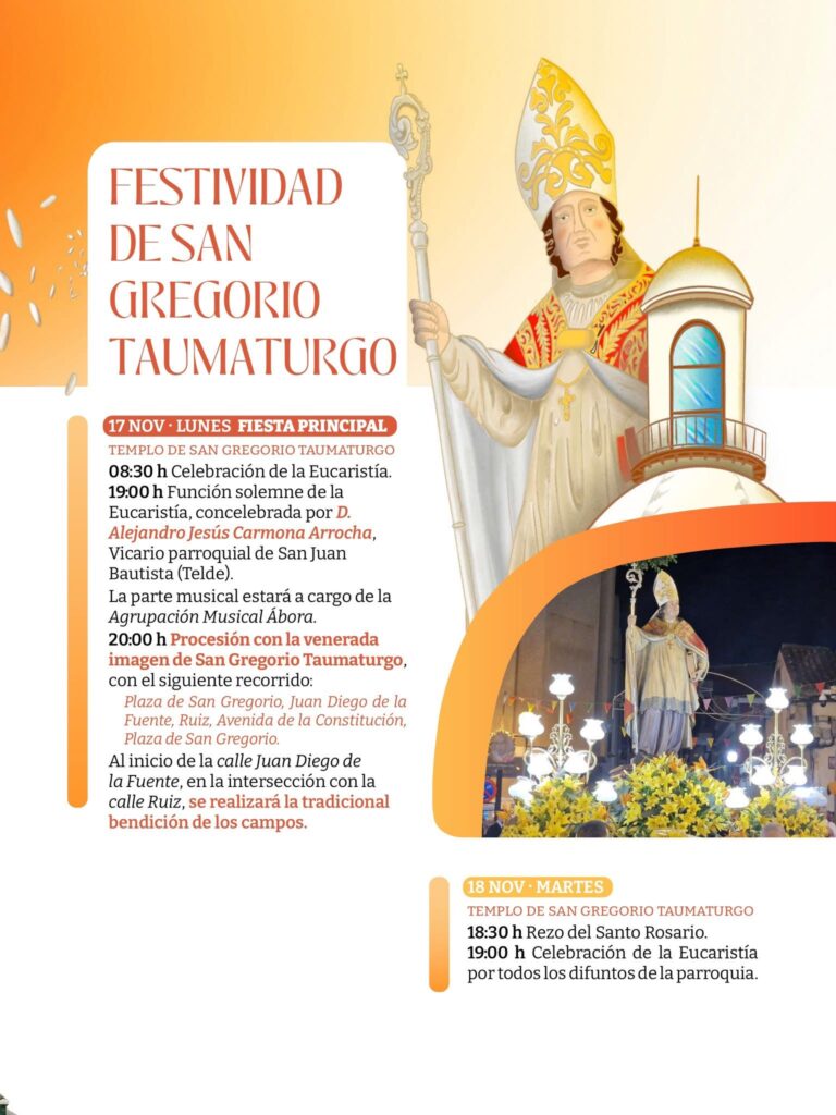 Programa Fiestas San Gregorio, Telde, San Gregorio Taumaturgo 2025 del 7 al 29 de Noviembre