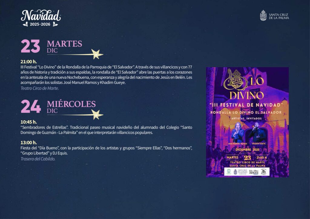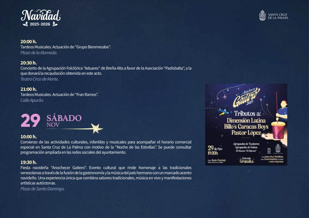 Programa Santa Cruz de La Palma, Navidad 2025 del 22 de Noviembre al 6 de Enero