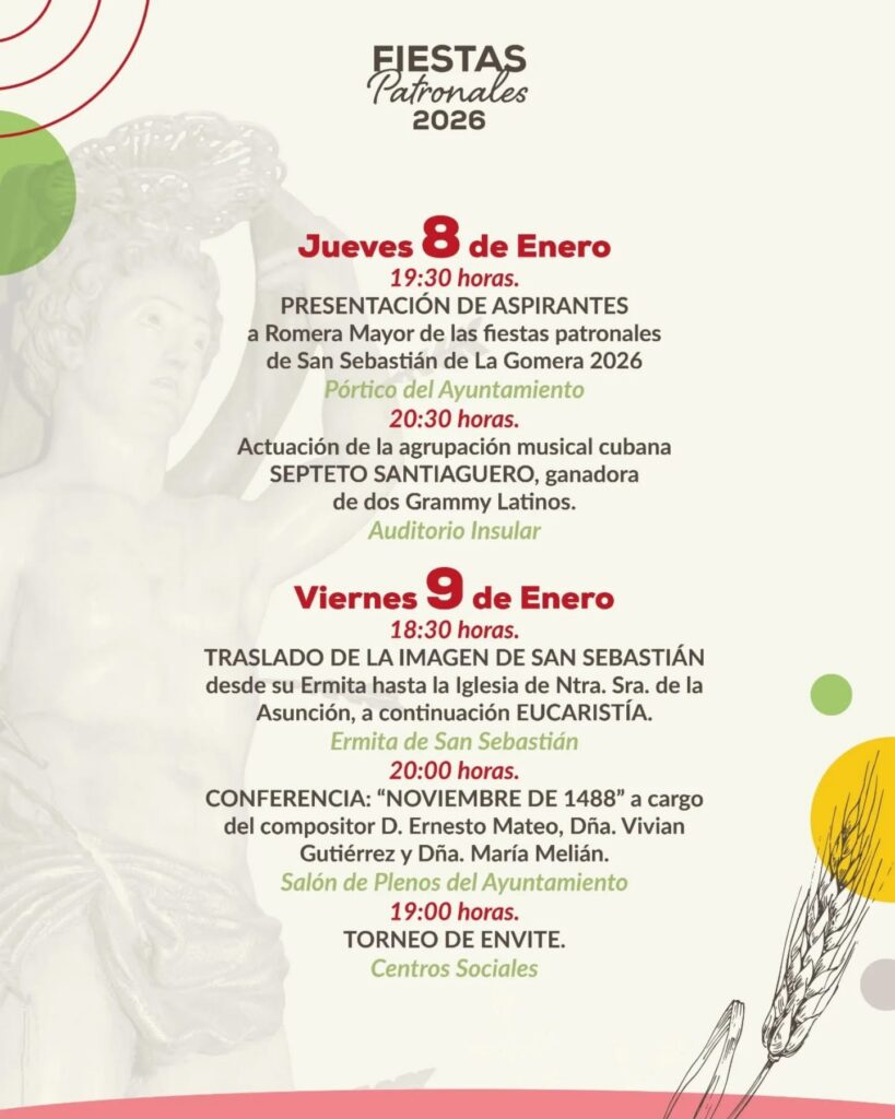Programa Fiestas Patronales San Sebastián de la Gomera, San Sebastián 2026 del 8 al 25 de Enero